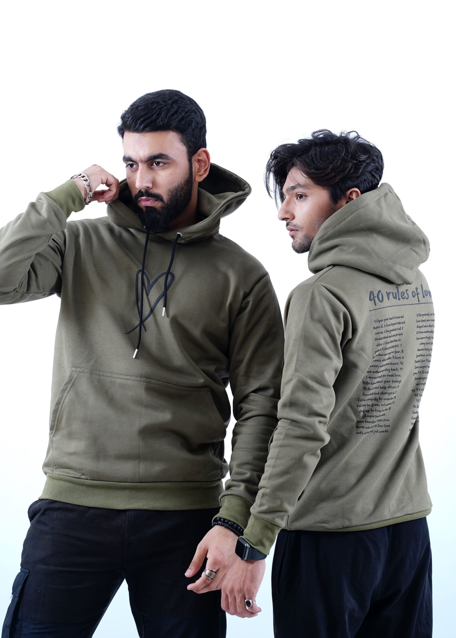 Olivgrüner Hoodie mit Herz